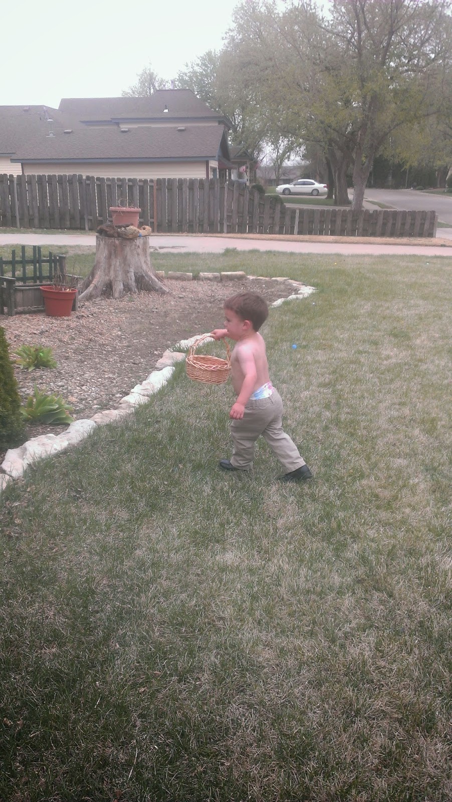 | He had a good time coloring eggs and watching Papa Bear and Uncle Antwon |